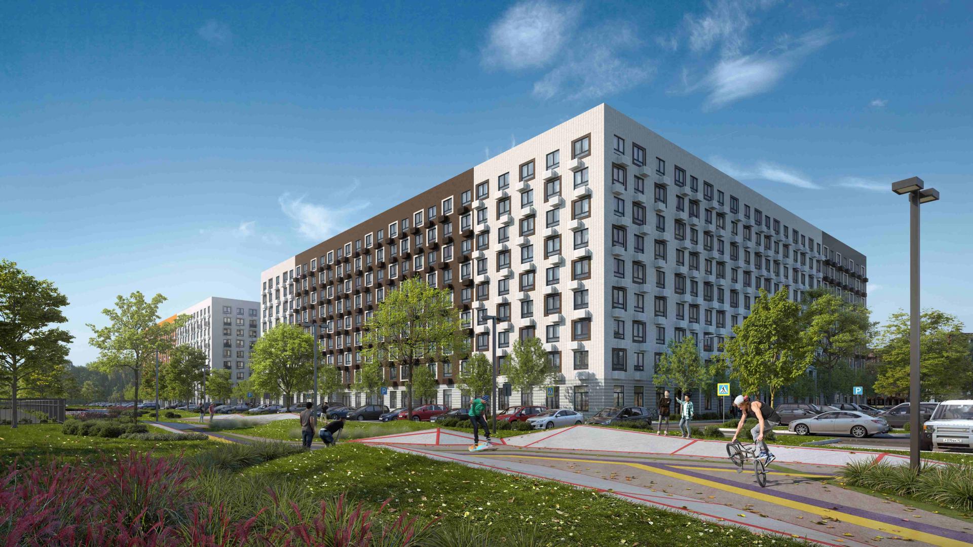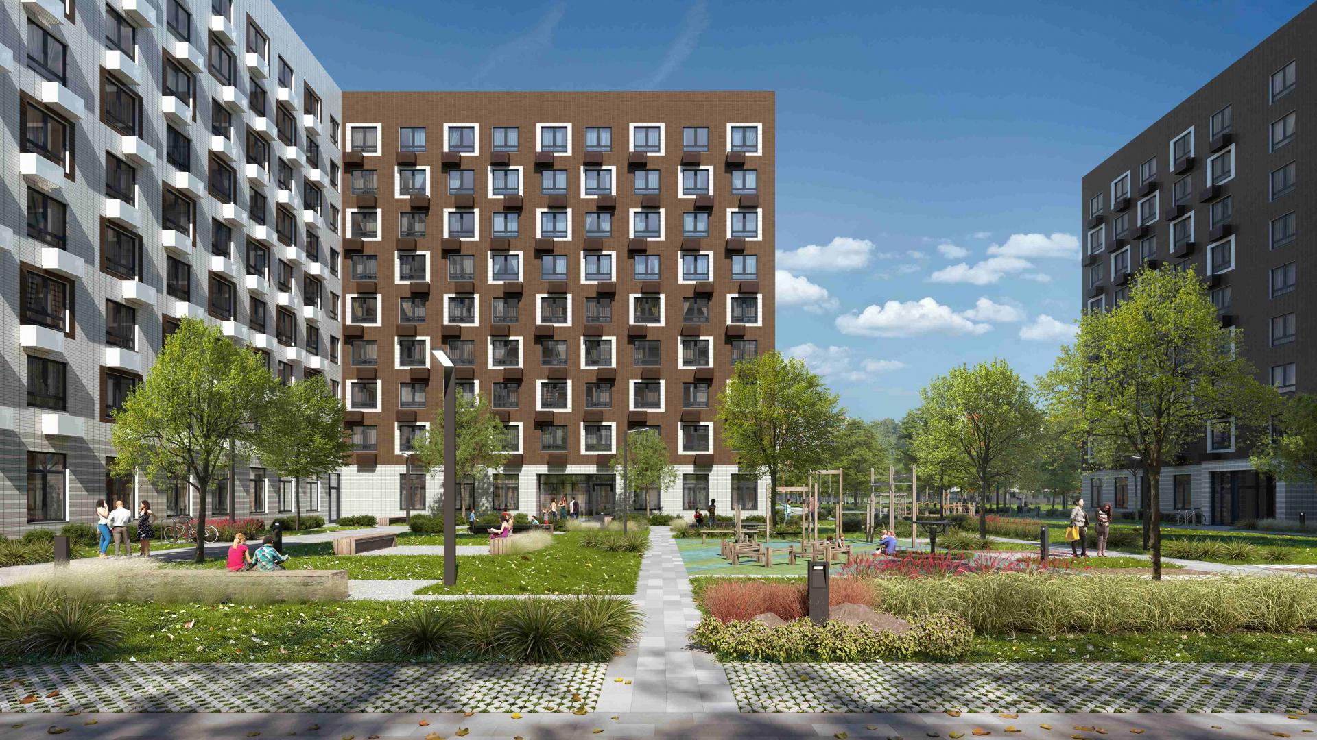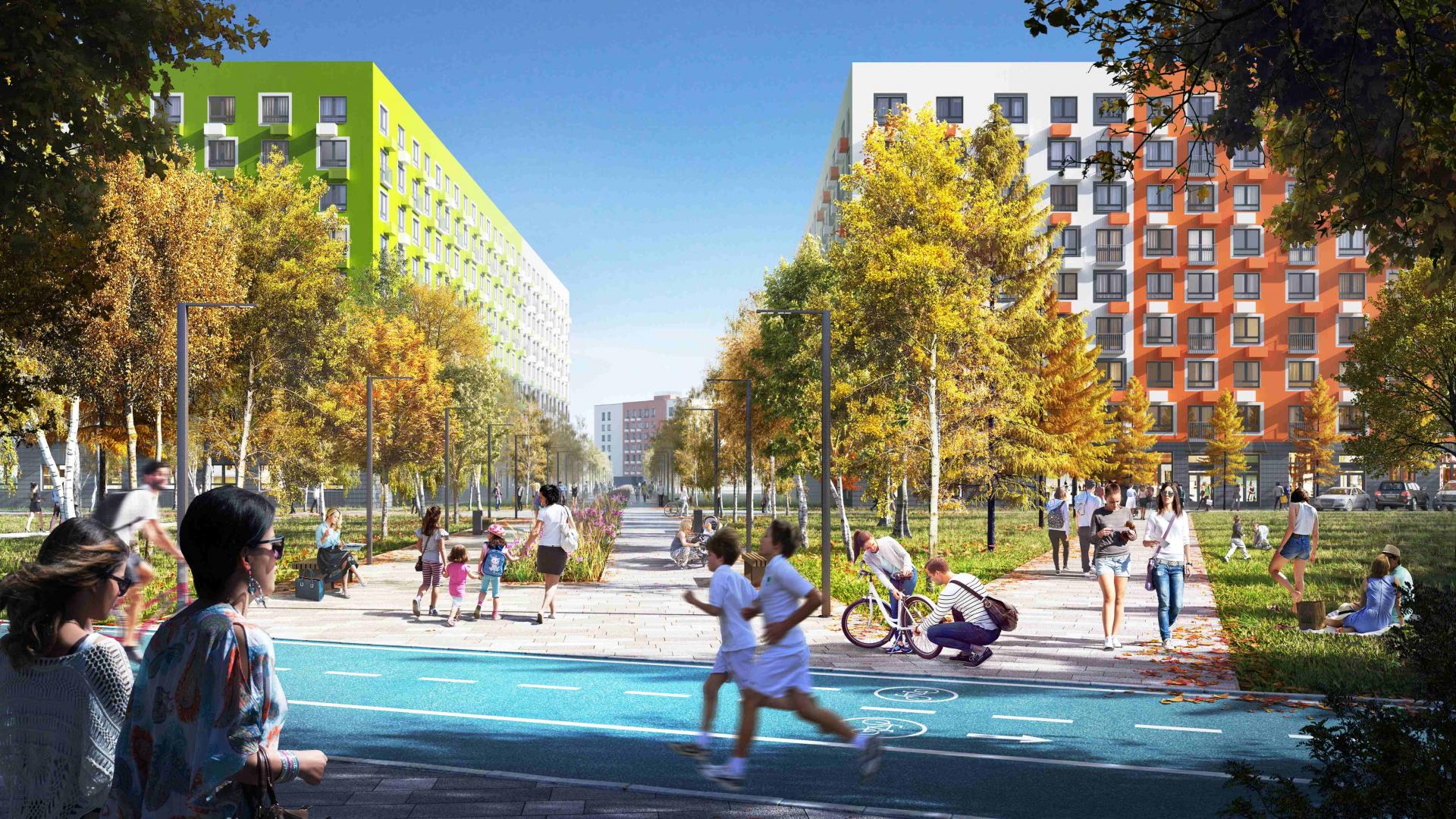 Оборудованы игровые эко-площадки, выполненные из натуральных материалов, спортивные площадки. Футбольные и баскетбольные поля расположили за периметром дворов, чтобы не нарушать спокойствие жителей. Планируется обустройство беговых и велосипедных дорожек.