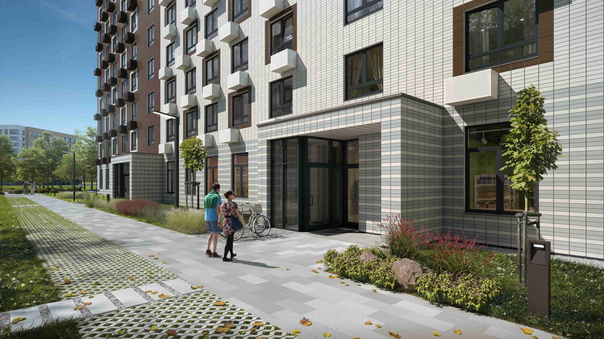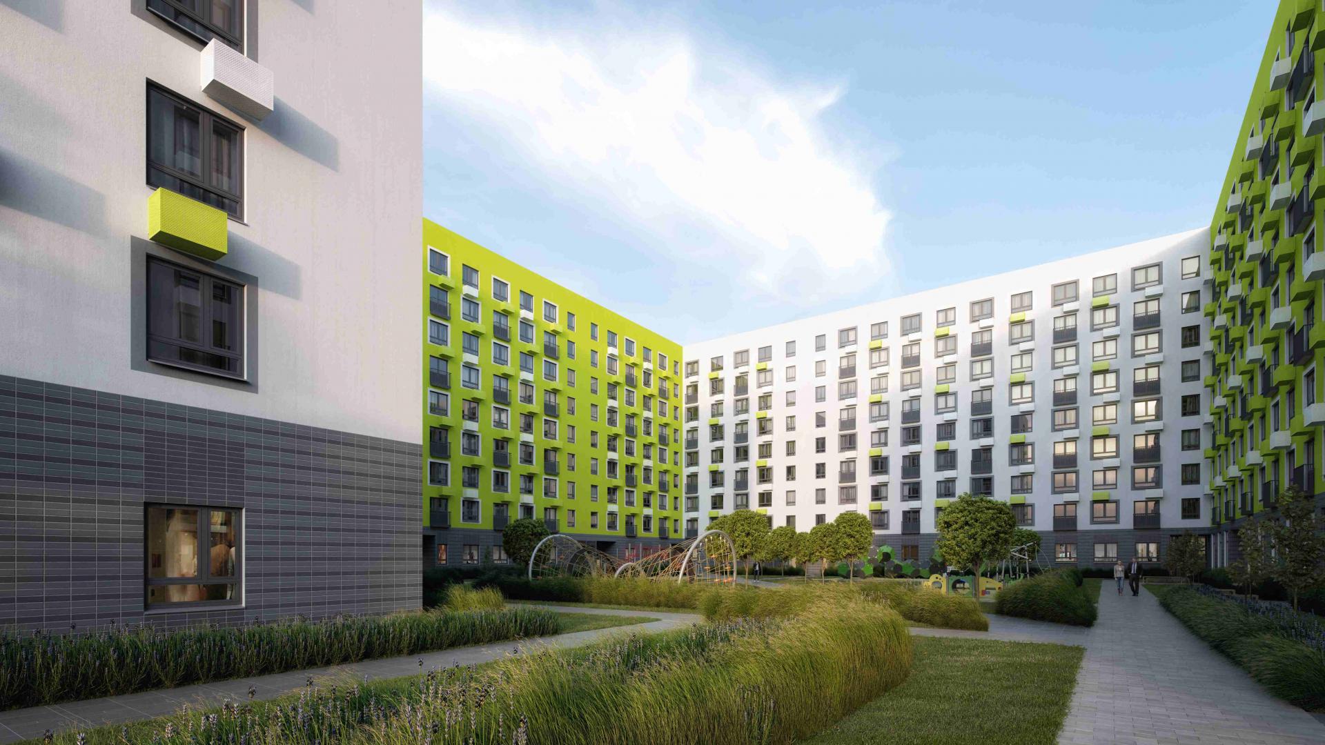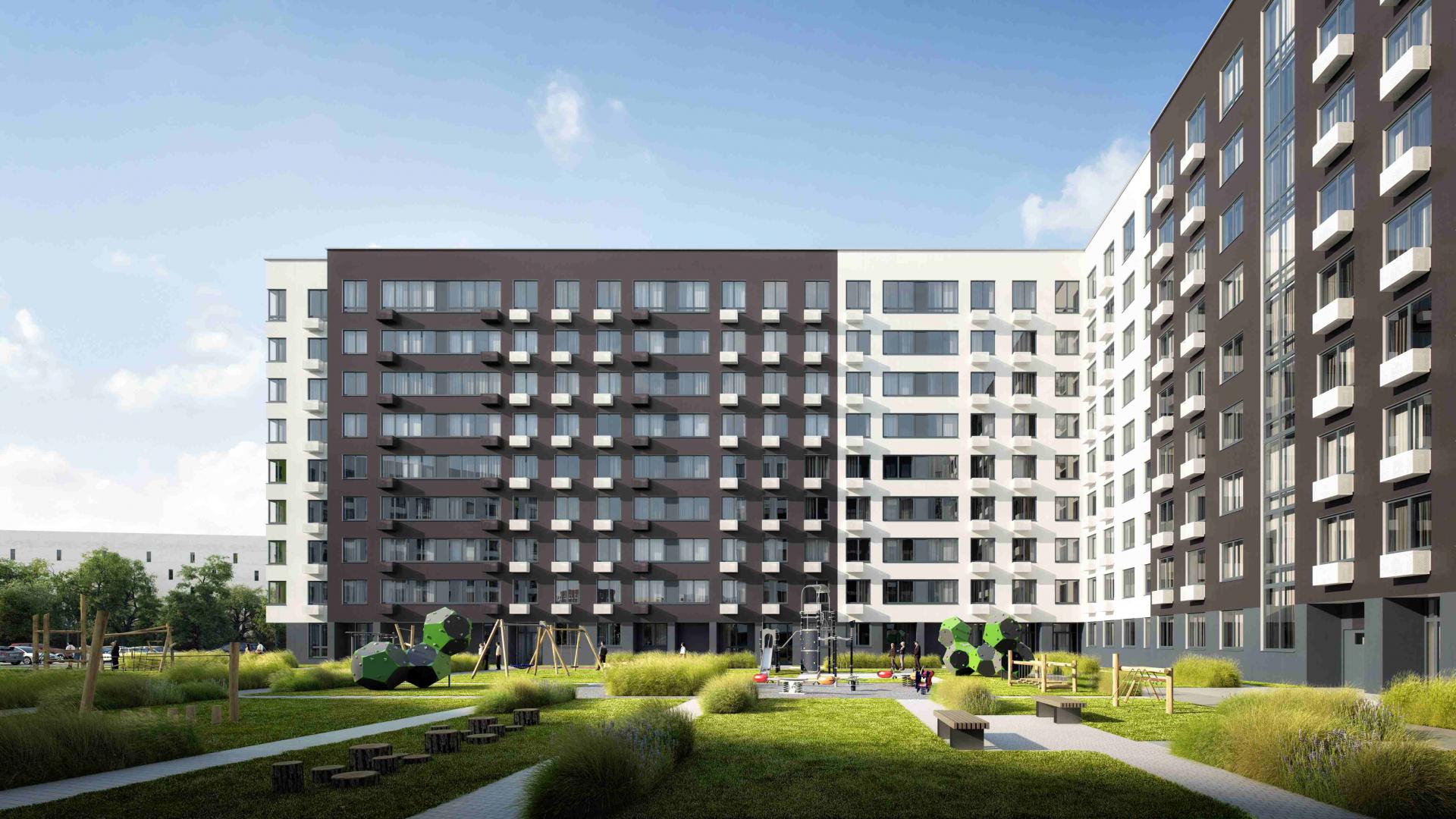 Оборудованы игровые эко-площадки, выполненные из натуральных материалов, спортивные площадки. Футбольные и баскетбольные поля расположили за периметром дворов, чтобы не нарушать спокойствие жителей. Планируется обустройство беговых и велосипедных дорожек.